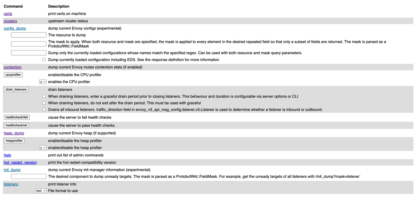 stats/prometheus View metrics that Envoy emitted and sent to the built-in Prometheus instance.